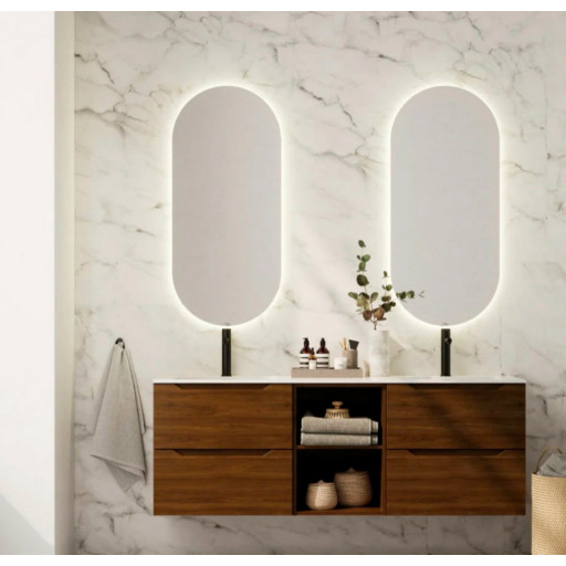 Linn Bad Tistel ovalt speil med lysfelt, 50x110x3 cm