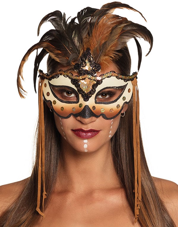 Voodoo Øyemaske med Fjær og Frynser