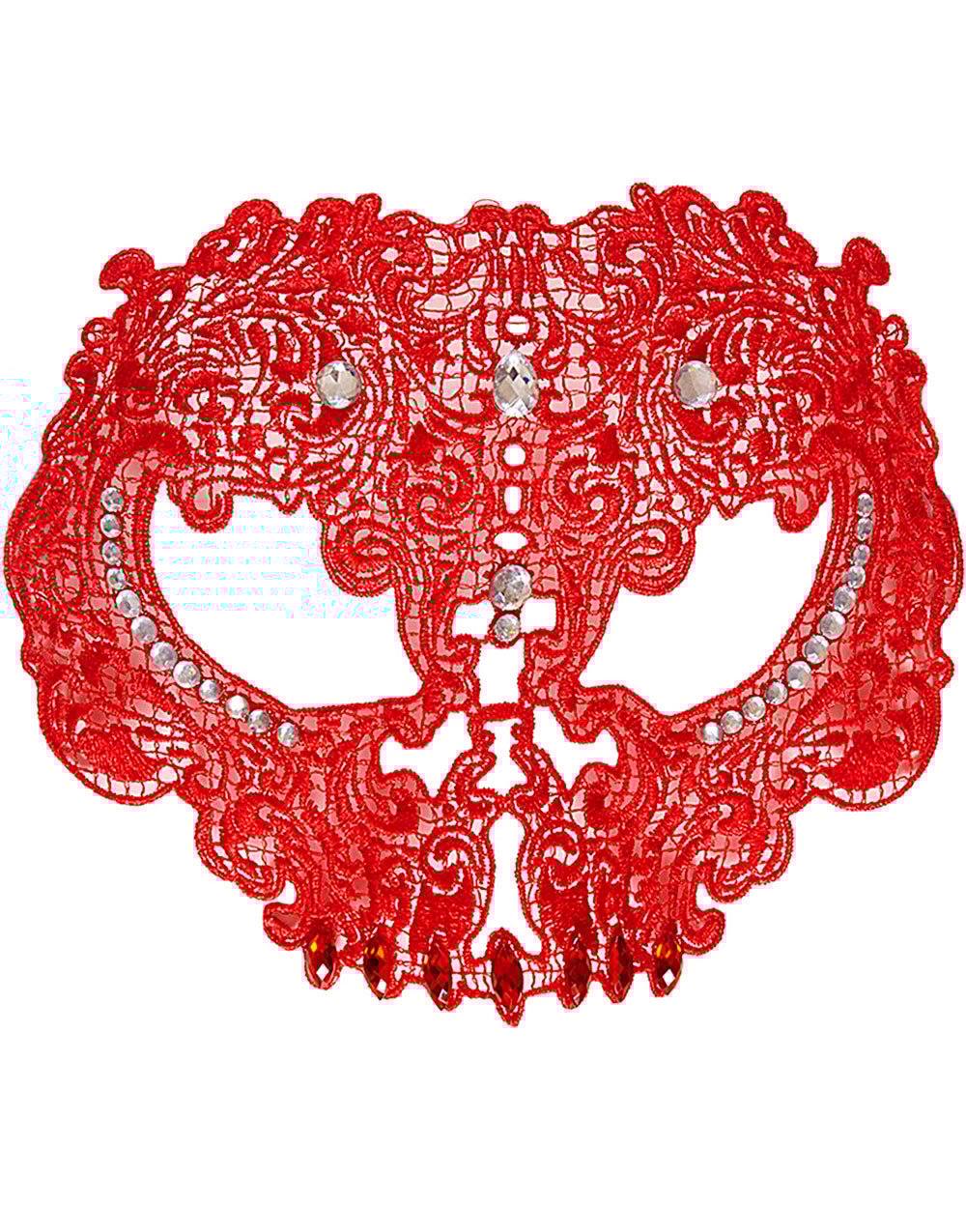 Rød Heklet Day of the Dead Øyemaske med Stener