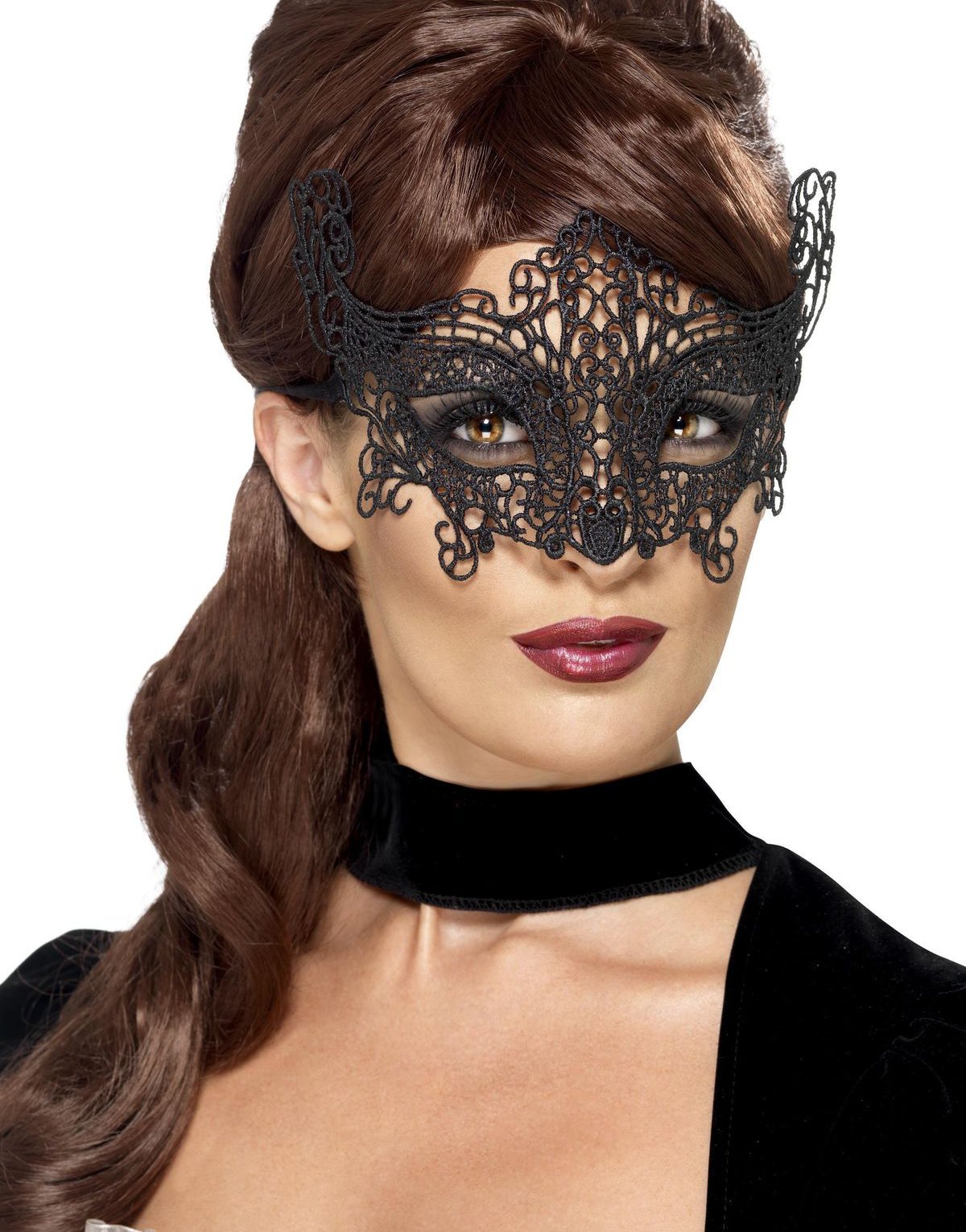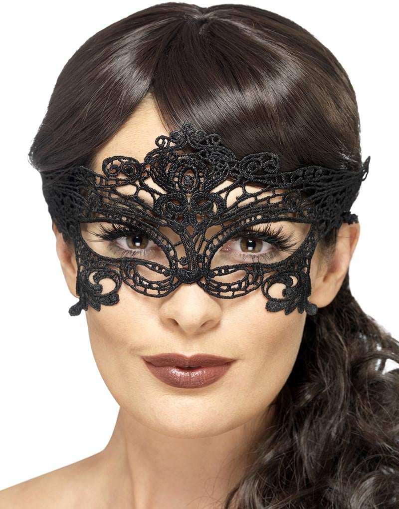 Svart Øyemaske med Heklede Blonder