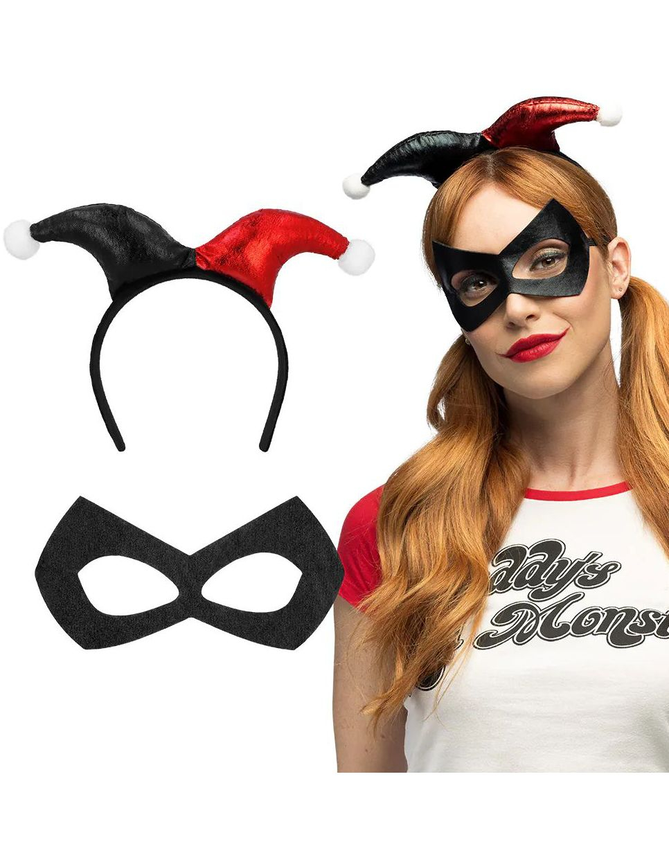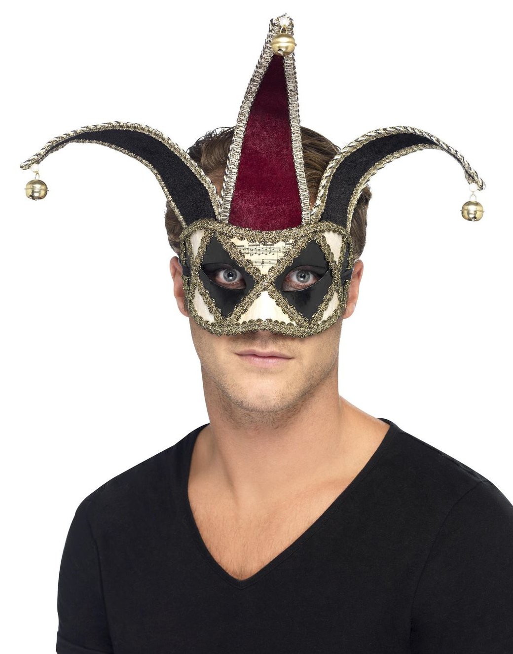 Svart og Rød Hoffnarr Øyemaske med Bjeller