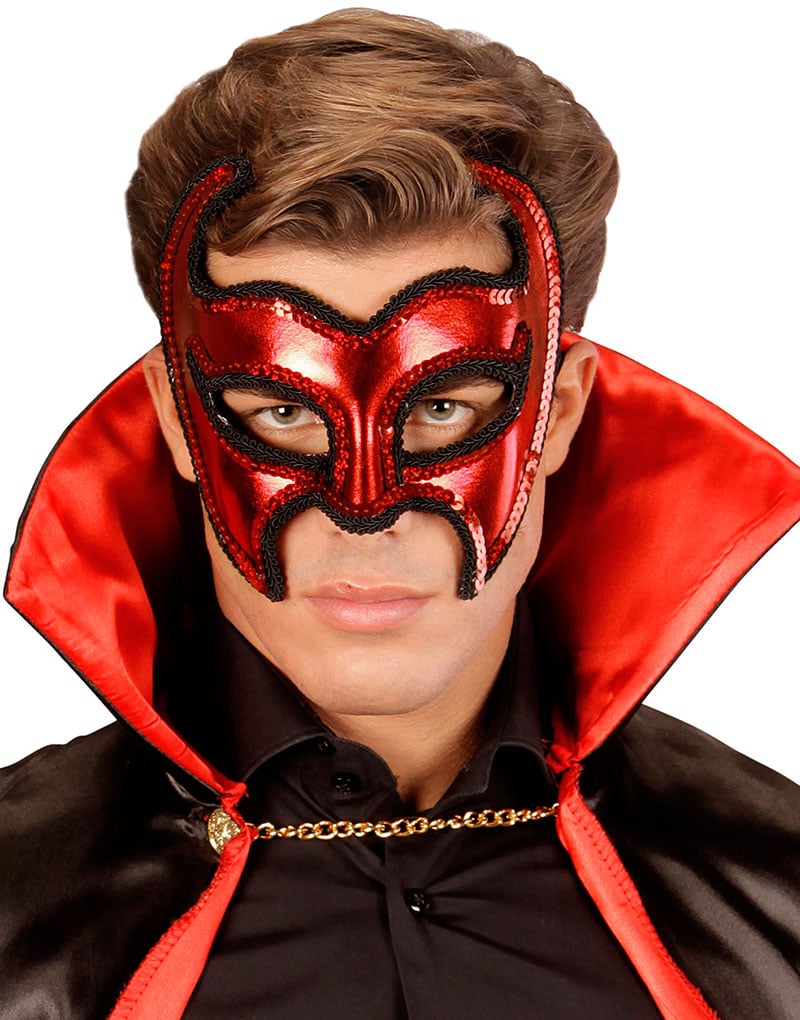Rød Djevel Øyemaske med Paljetter