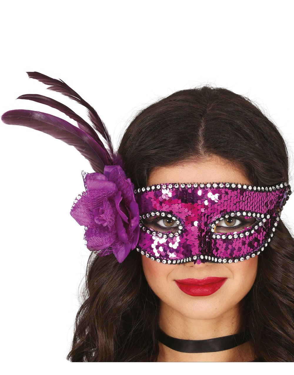 Lilla Øyemaske Med Svart Fjær og paljetter