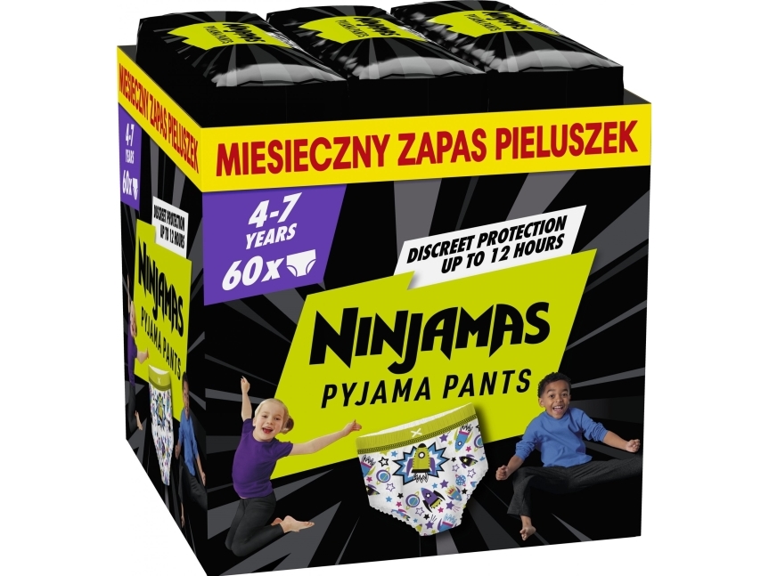 Ninjamas For Gutter 4-7 År Absorberende Nattbukser, 60 Stk, Månedsboks