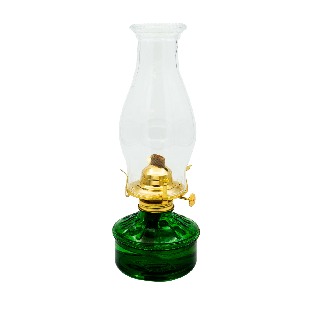 Parafinlampe bord, m/grønt glass