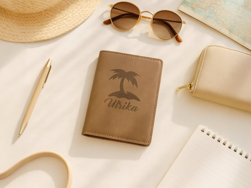 Passetui i skinn med gravering - egen tekst
