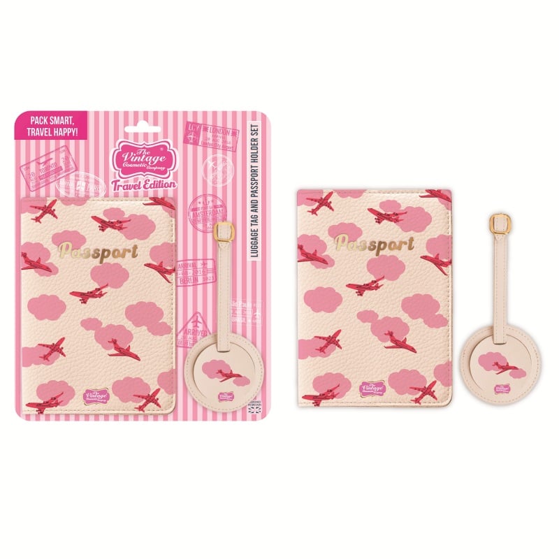 Sett med passholder og bagasjelapp med rhinsteiner - rosa