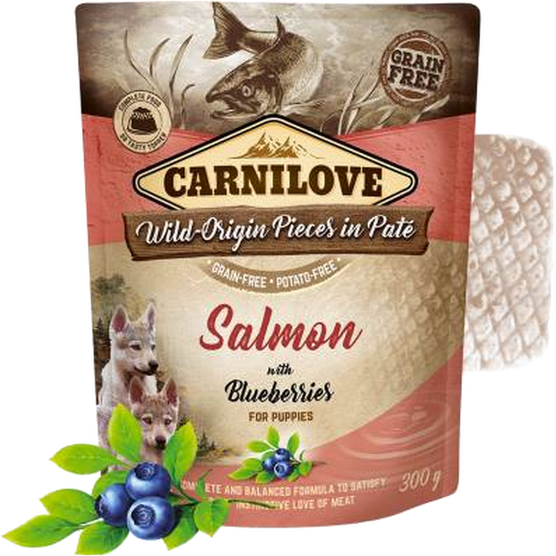 Dog Pouch Paté Laks med bær for valper 300 g x 12 stk. - Hund - Hundefôr & hundemat - Våtfôr & våtmat - Carnilove