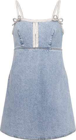 Denim Pearl Mini Dress - Light Blue