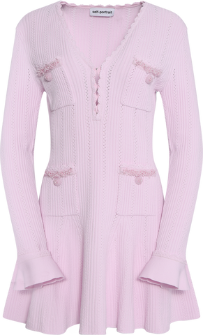 Self-Portrait Pearl Trim Knit Mini Kjole