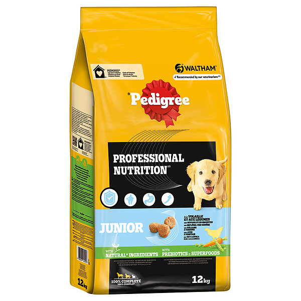 Pedigree Professional Nutrition Junior Med Fjærkre Og Grønnsaker, Mellomstore Og Store Raser - Tørrfôr - 12 Kg