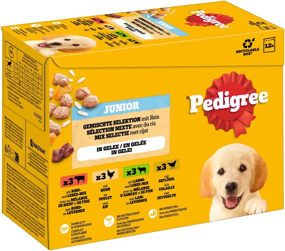 Pedigree Junior Porsjonsposer Multipakke - 12 x 100 g Blandet utvalg i gelé (4 varianter)