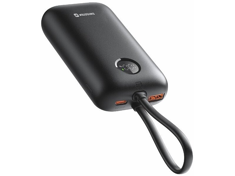 Swissten Voltbox 35W 10000mAh Med Innebygde Kabler USB-C og Lightning