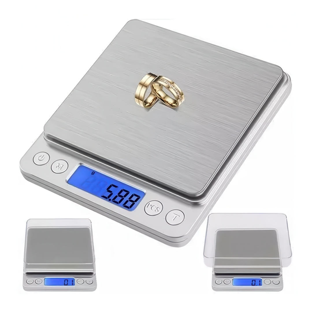 Presisjonsvekt 0,01 g - 100 g med LCD-display og plattform i rustfritt stål