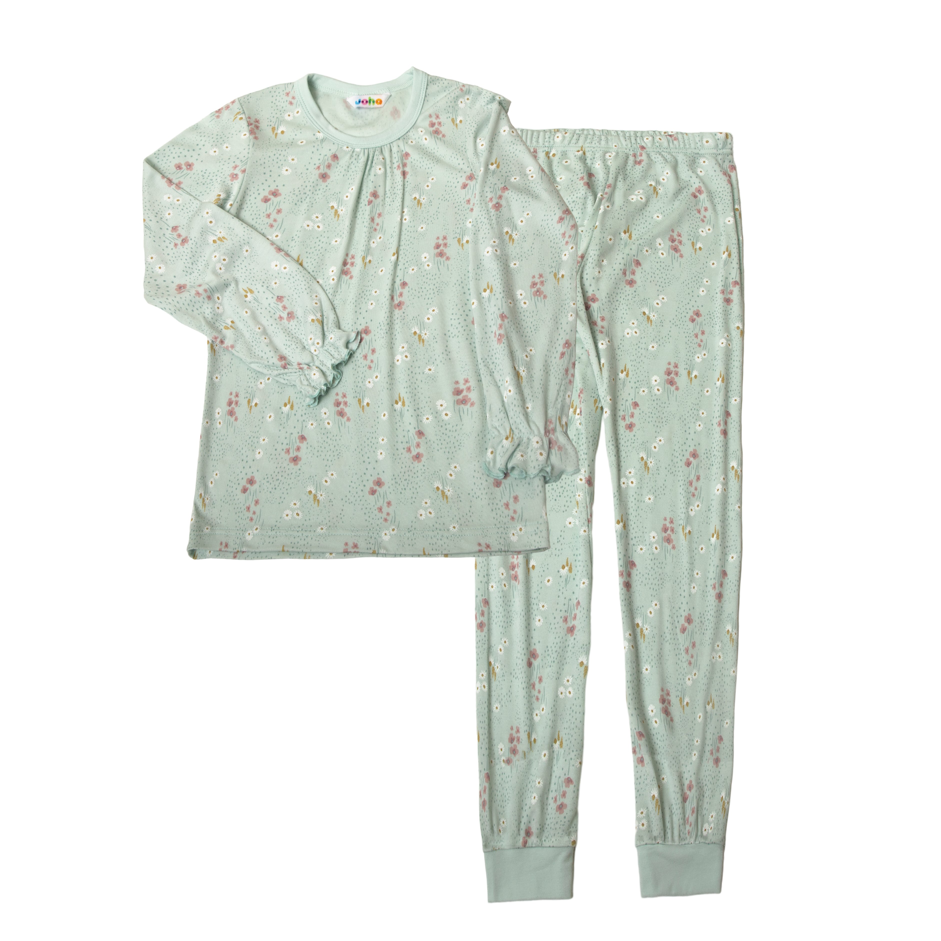 Joha Flower field bambus pysjamas sett - mynte