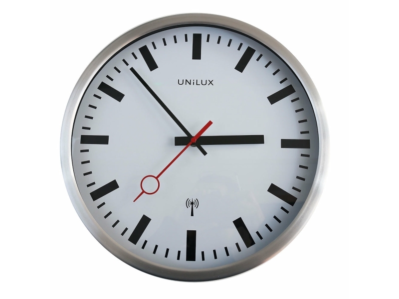 Unilux 400124567, Vegg, Radiostyrt Klokke, Rund, Grå, Metallisk, Stål, Glass