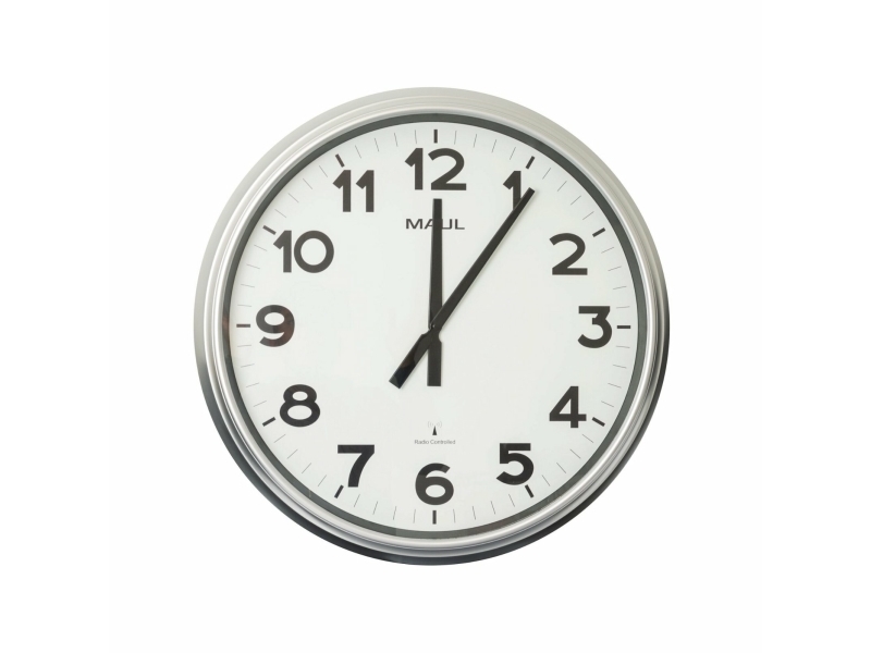 Maul 9056195, Vegg, Radiostyrt Klokke, Rund, Sølv, Plast, Glass