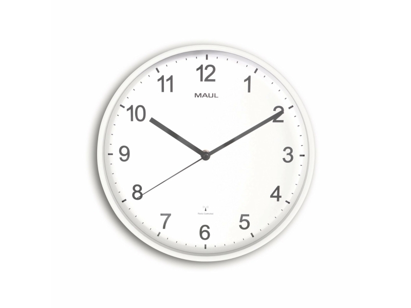 Maul 9054602, Vegg, Radiostyrt Klokke, Rund, Hvit, Plast, Glass