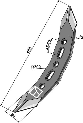 Fôrblanderkniv til Seko Lengde 71, Ø 8,5, Radius 45°