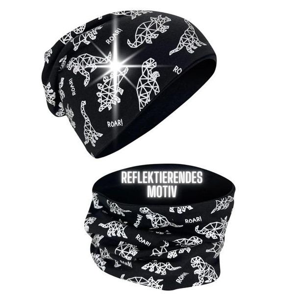 Heckbo Lue og buff med refleks, 2-8 år, Dino sjelett