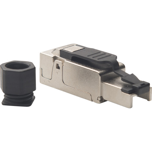 Modulær hengslet RJ45-plugg kat.6A, PoE+, 10GbE, STP, metall, verktøyløs, AWG 27-22, flertrådet/solid