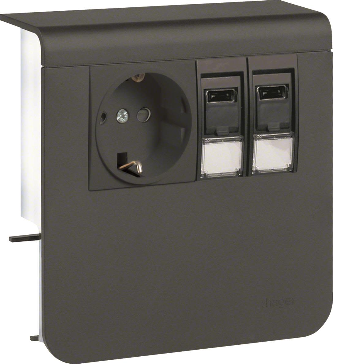 Hager SL200809209011 Uttak 1-veis + 2 x RJ45, 80 mm Antrasittgrå