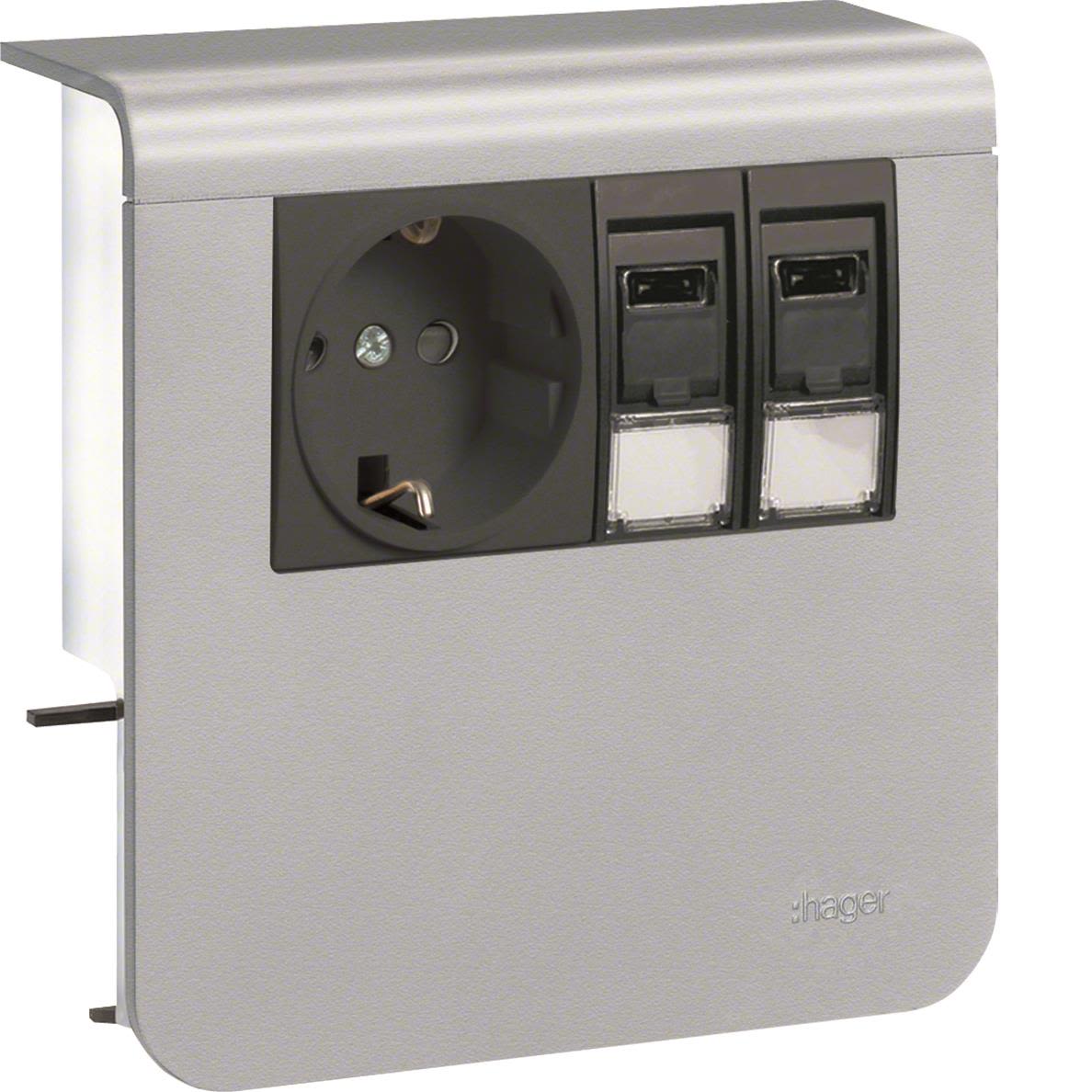 Hager SL20080920D1 Uttak 1-veis + 2 x RJ45, 80 mm Aluminium