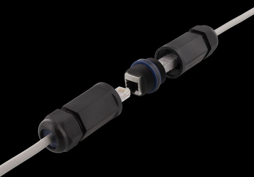 Vanntett kobling – 2x Cat6 RJ45 uttak, skjermet, IP67, svart