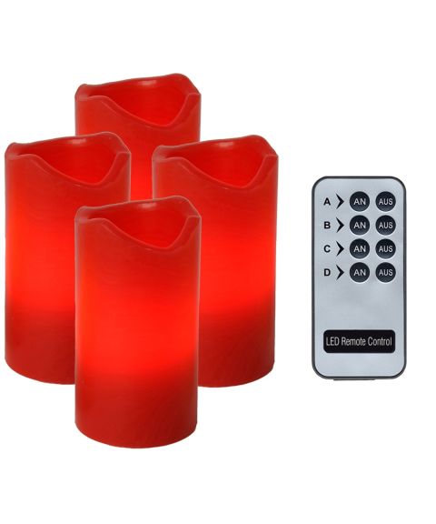 Advent LED kubbelys, høyde 10 cm, med fjernkontroll, pakke 4, Rød voks