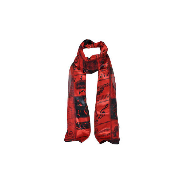 Skjerf, rødt med noter og instrumenter, TS-19025