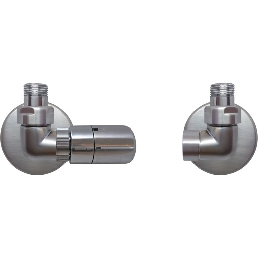 Kriss Corner Rom Plus ventilsett vinkelløpende m/Romtermostat, Børstet krom