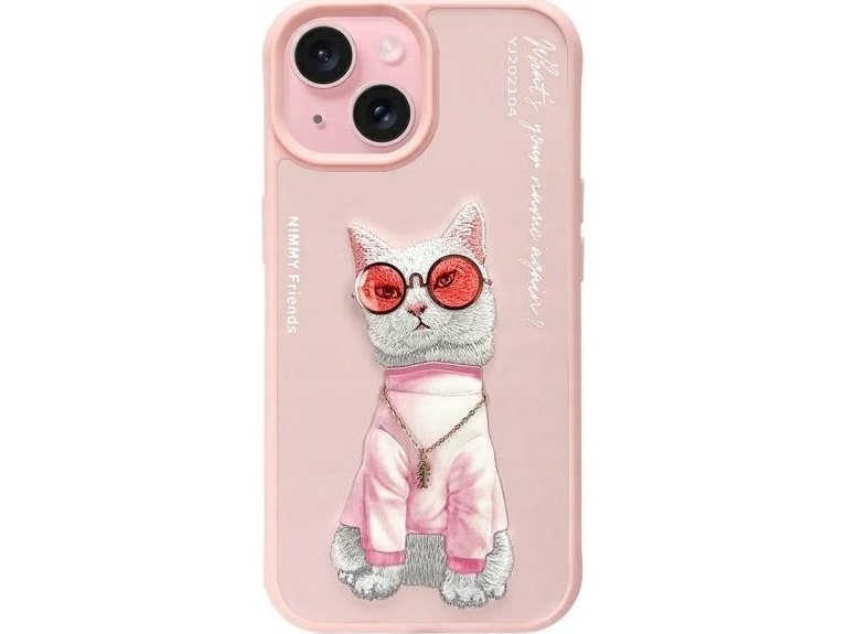 Nimmy Apple Iphone 15 6,1" Telefondeksel Rosa Briller Cool Cat
