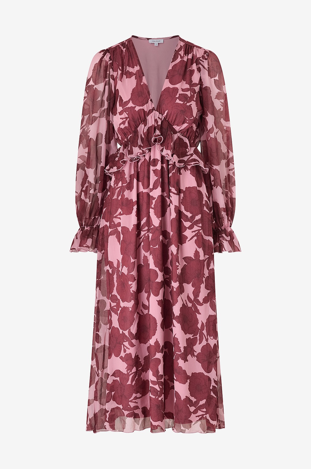 Bubbleroom - Maxikjole Frill L/S Chiffon Midi Dress - Rosa