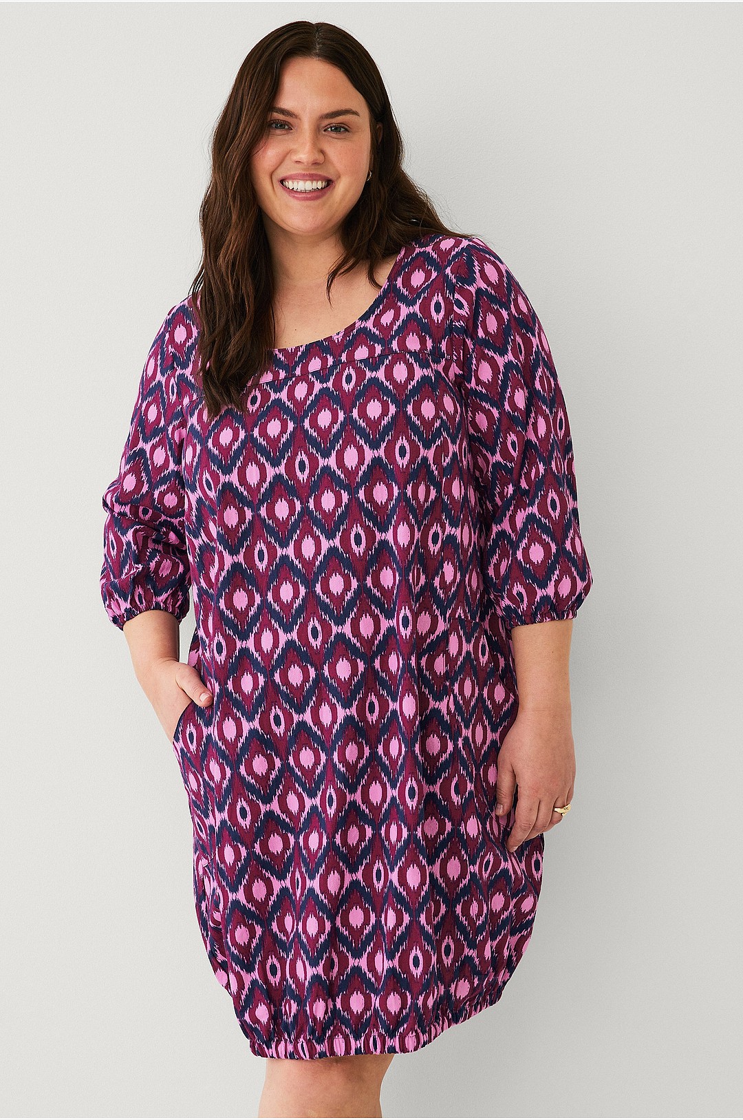 Zizzi - Kjole jEasy 3/4 Aop Abk Dress - Rosa