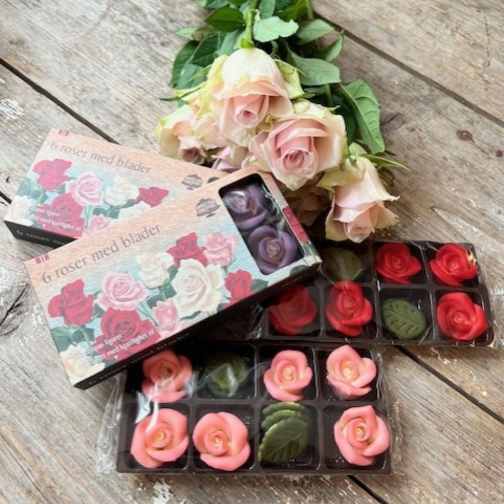 Spiselig Kakepynt Rosa Marsipanroser, Pk/6 | Slikkepott.No