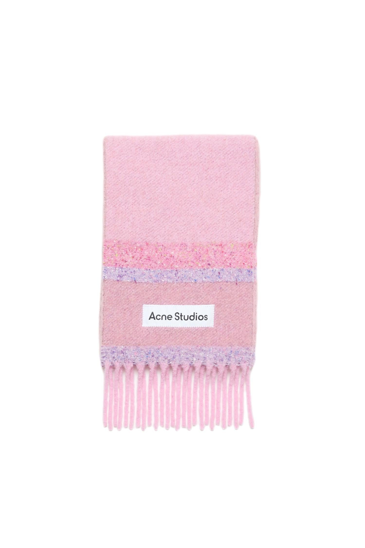 Acne Fringed Scarf Logo Skjerf Rosa Mønster