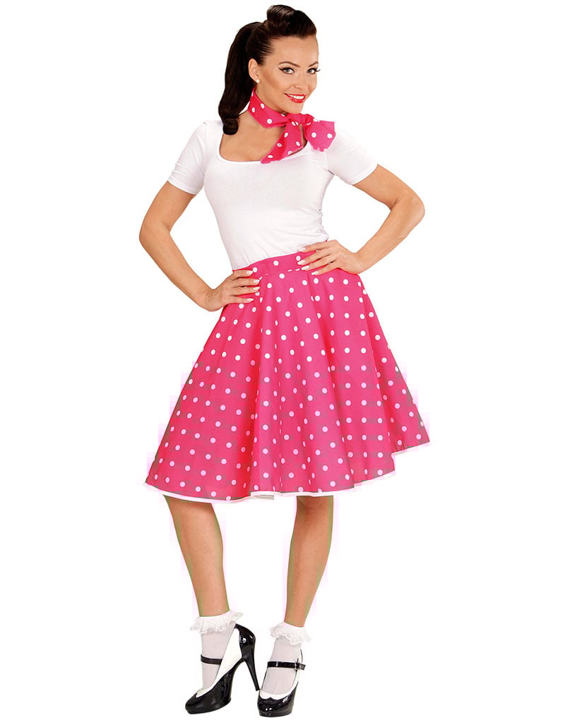 Rosa 50-Talls Polka Dot Kostymeskjørt og Skjerf