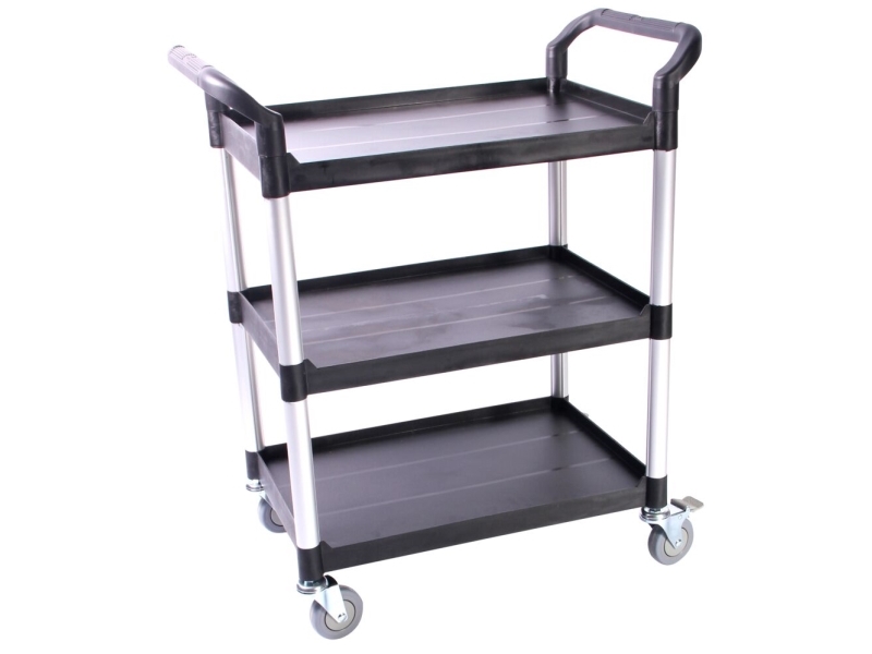 Rullebord, Tina Trolleys, 850X480x1000mm, Sort, Fiberplast, Med Styr, 3 Hylder