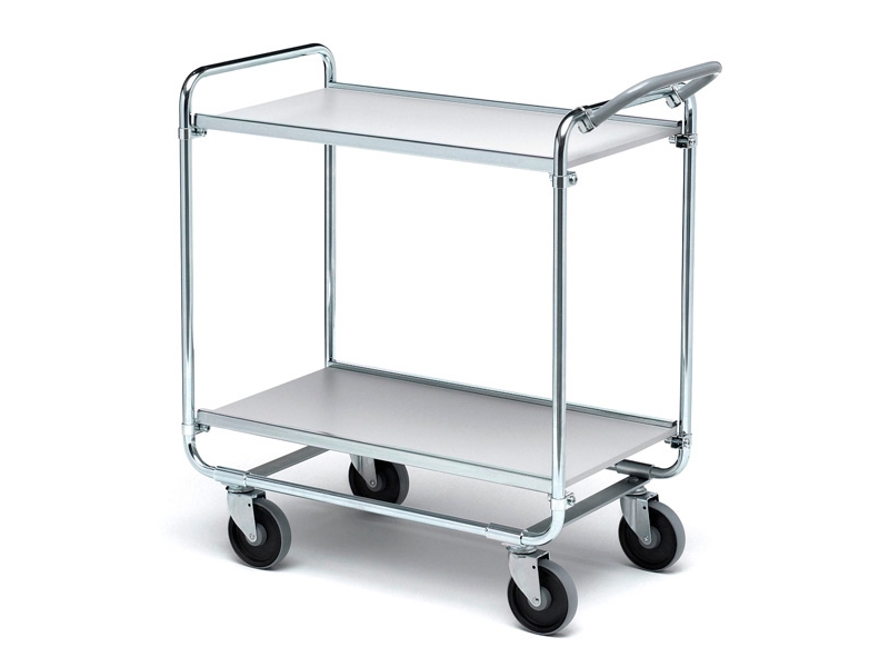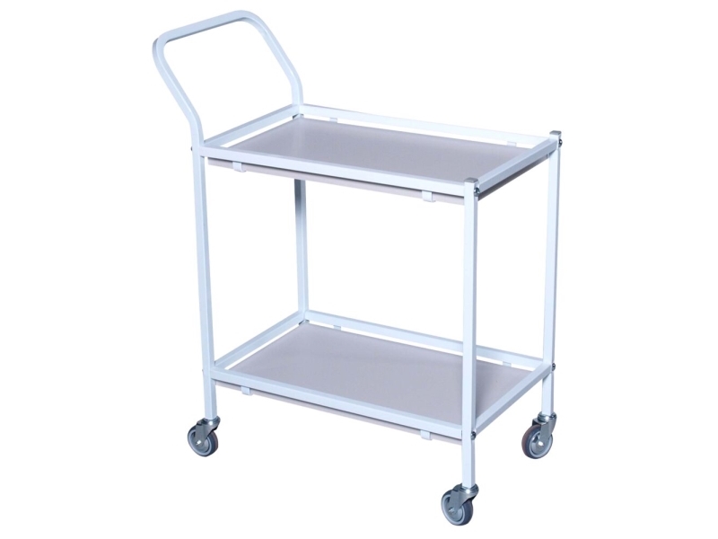 Rullebord, Tina Trolleys, 750X390x920mm, Hvid, Pulverlakeret Stål, Med Styr, 2 Hylder, Slingrekant