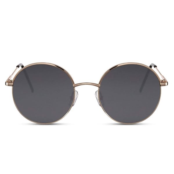 Runde Solbriller med gullinnfatning og sort linse