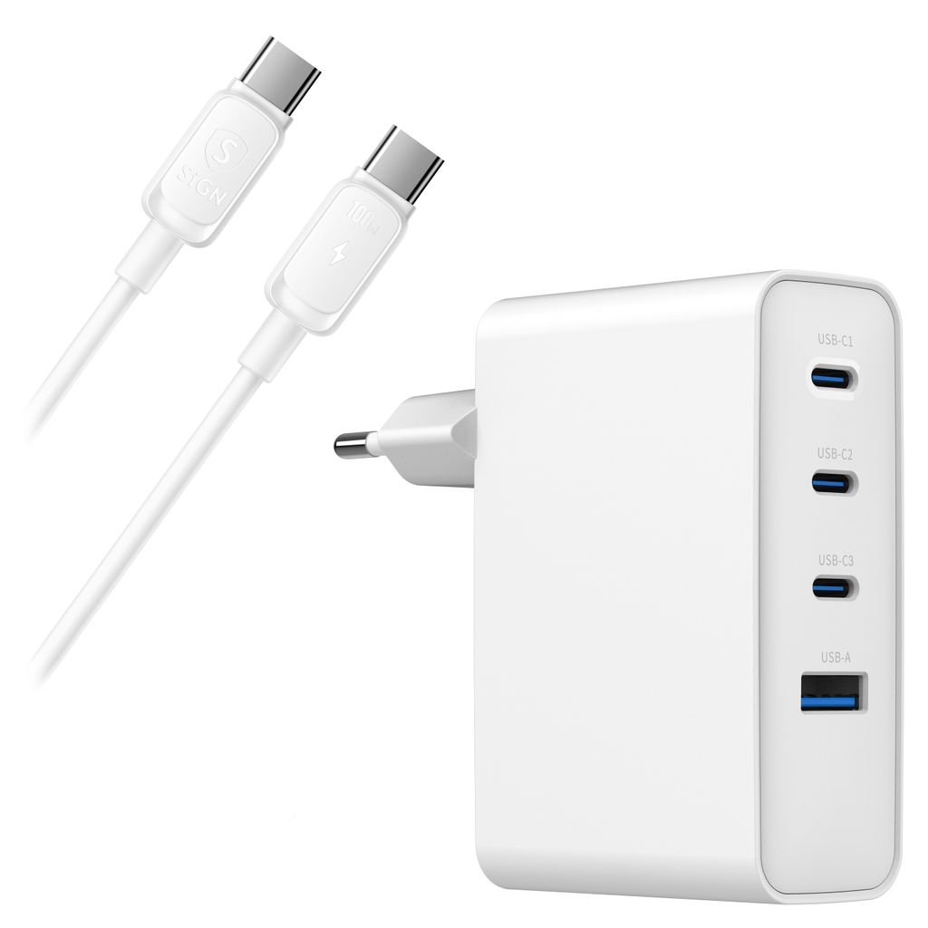 SiGN Extreme hurtiglader 100W for Samsung, mobil, bærbar PC + 100W USB-C-kabel