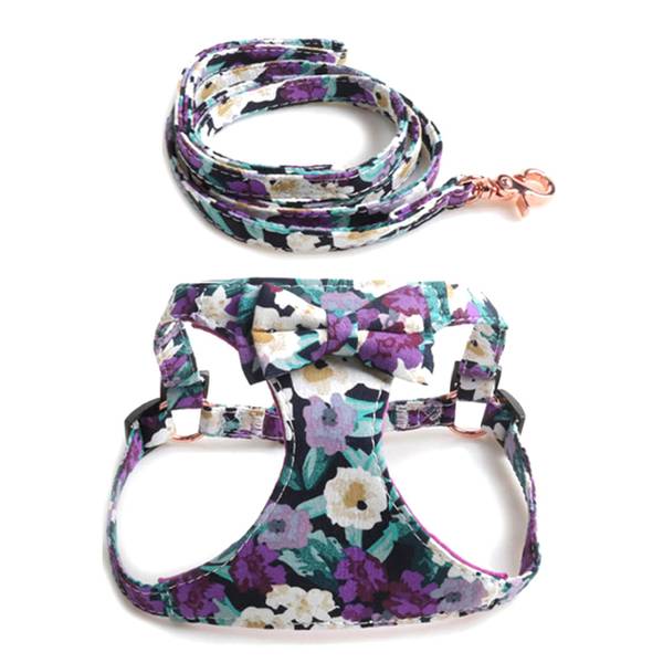Lilla blomstret sele og lenke til hund, 3 str