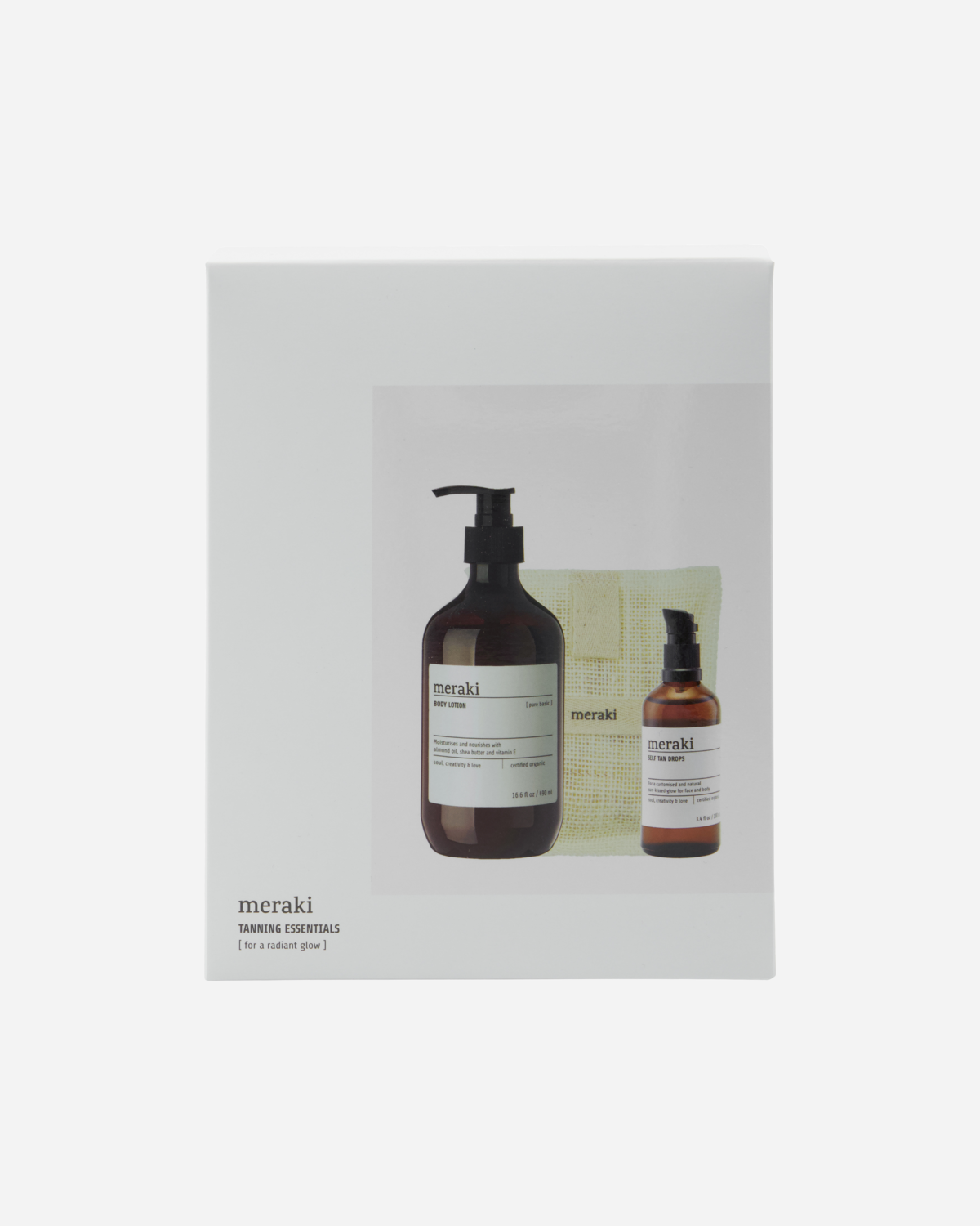 Meraki - Gift Box with Self Tan Drops, Bath Mitt, Body Lotion - White - 140g, 100ml, 490ml