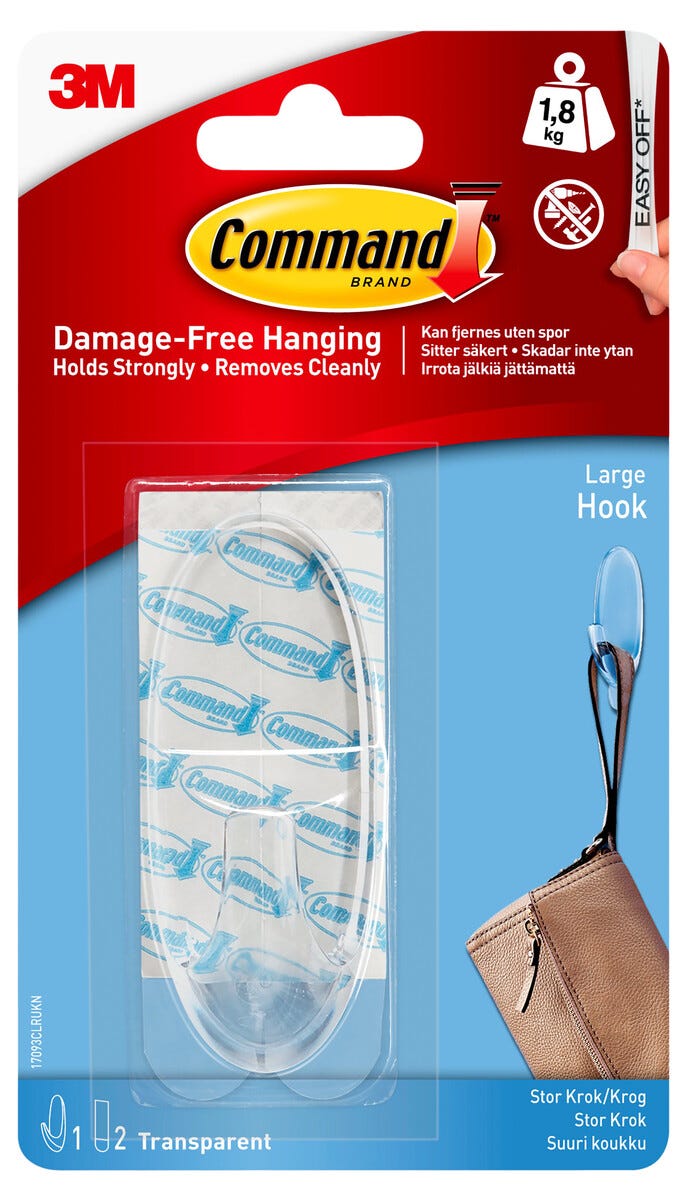 Command selvheftende gjennomsiktig krok, stor