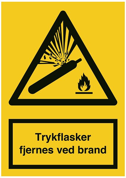 D-S Skilt Advarselsskilt Trykkflasker fjernes ved brann Selvklebende vinyl