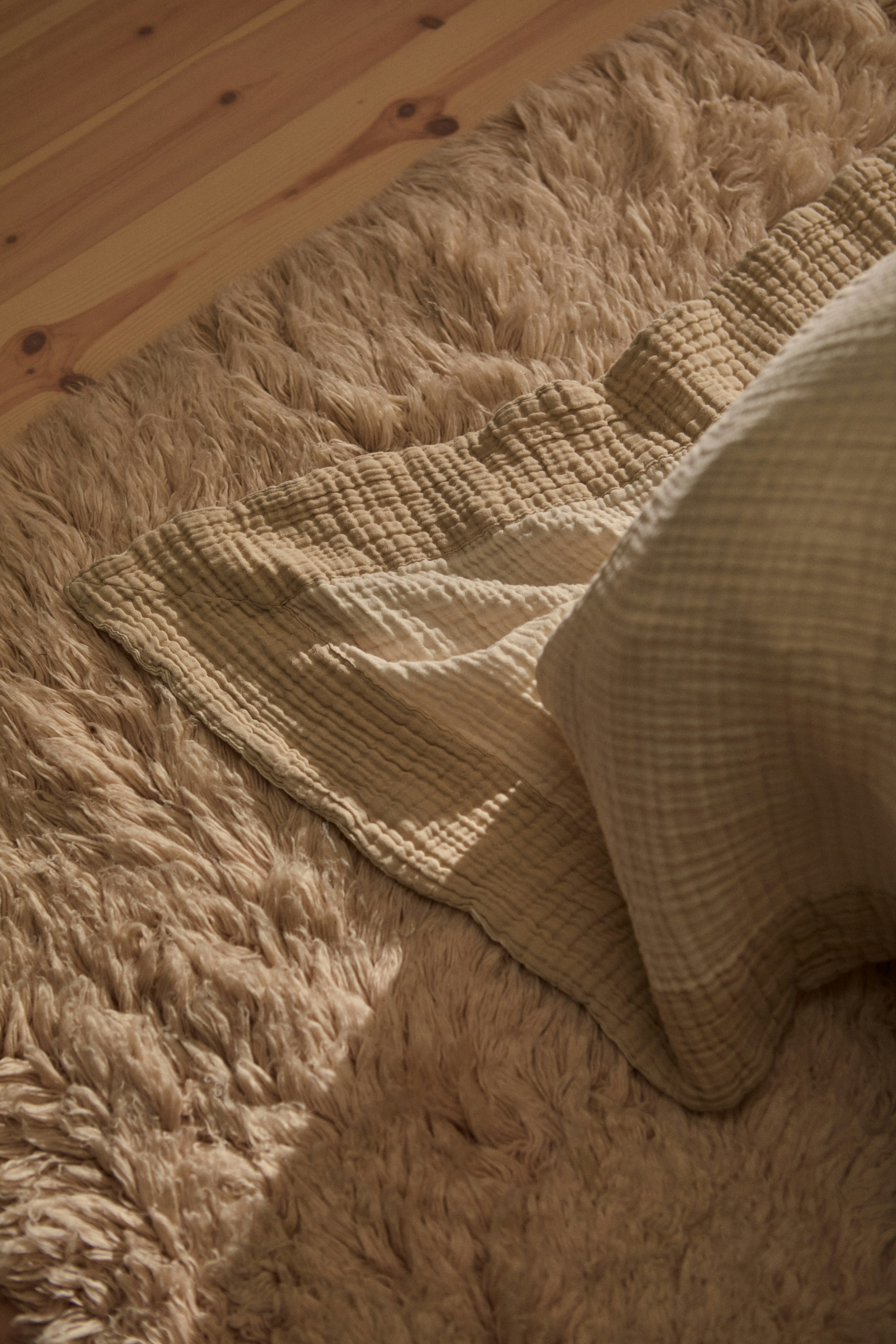 Decotique Ella Crinkle Sengeteppe 260x260 Sand
