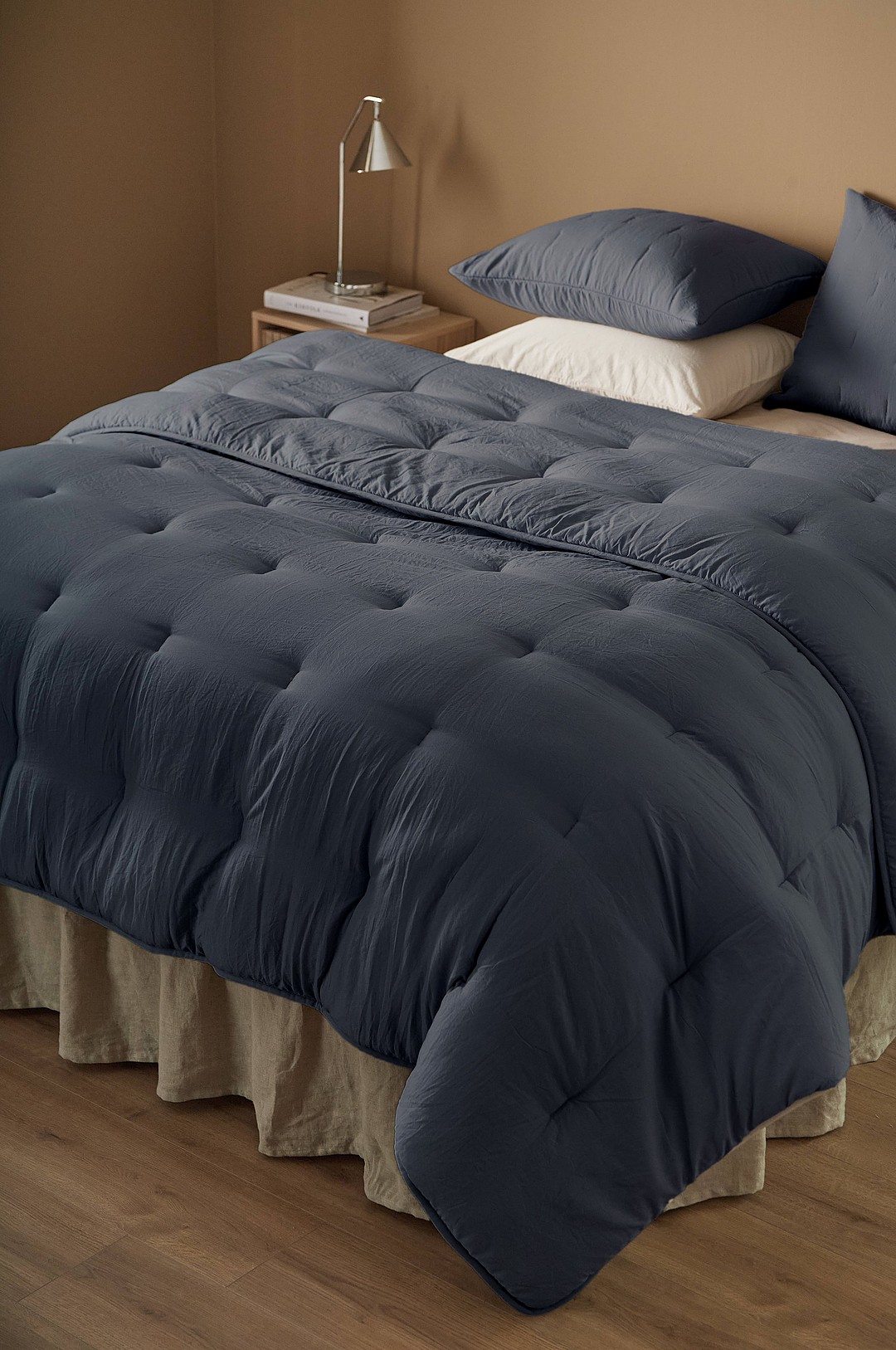 Ellos Home - Sengeteppe Kiyoko i vasket lin - Blå