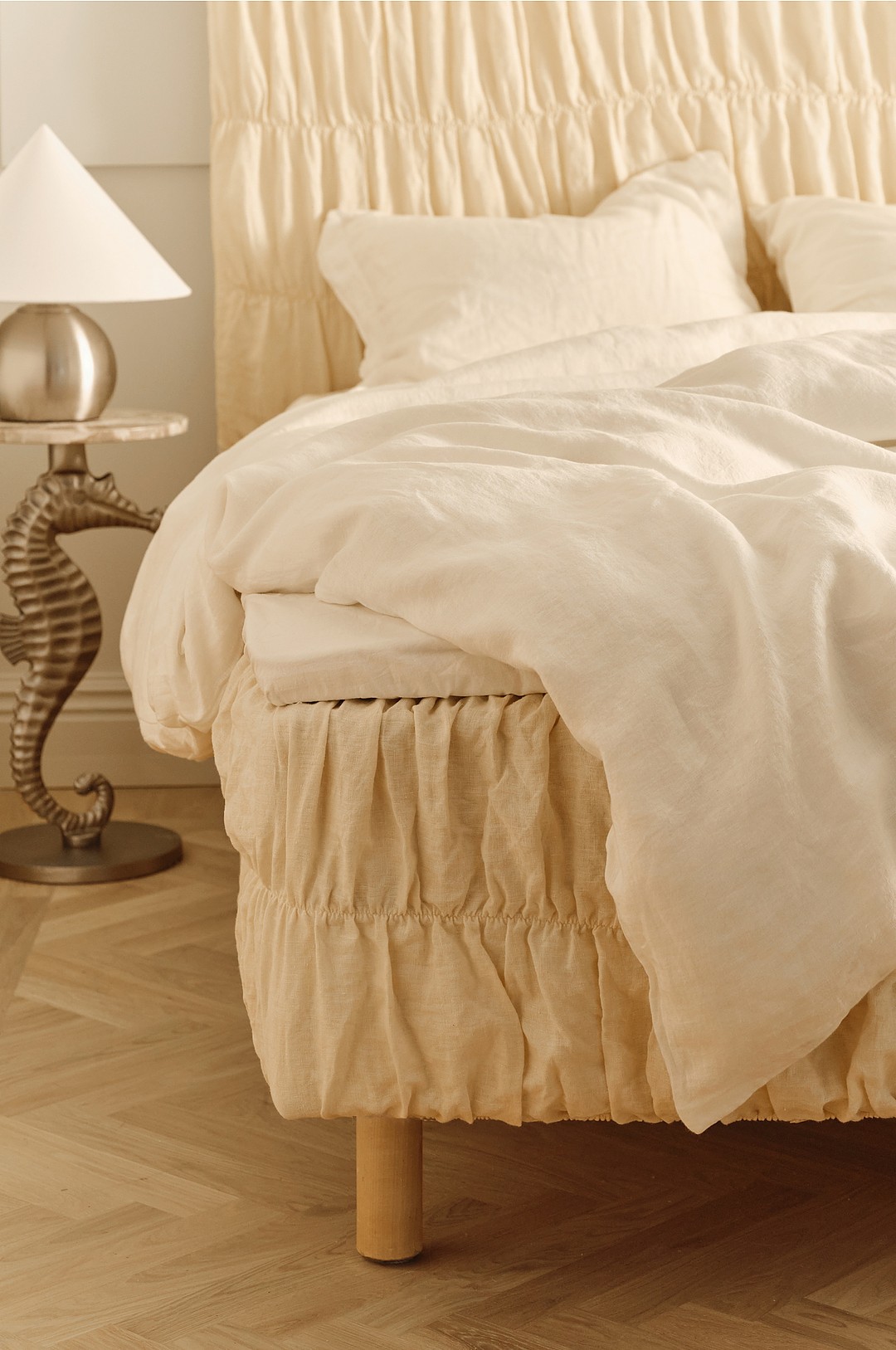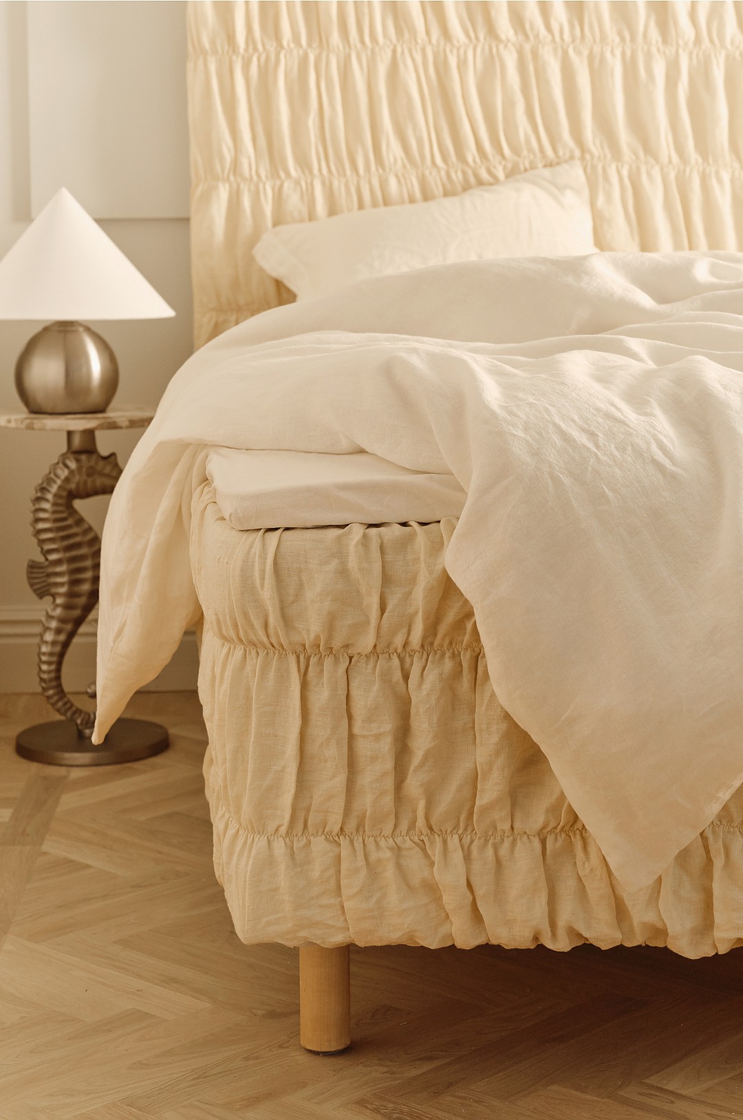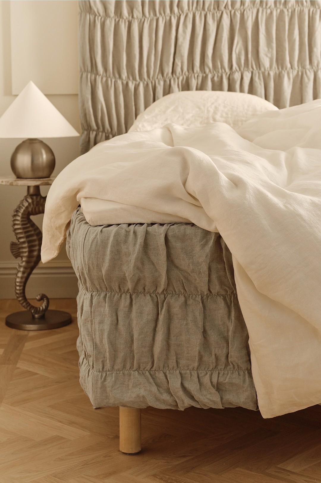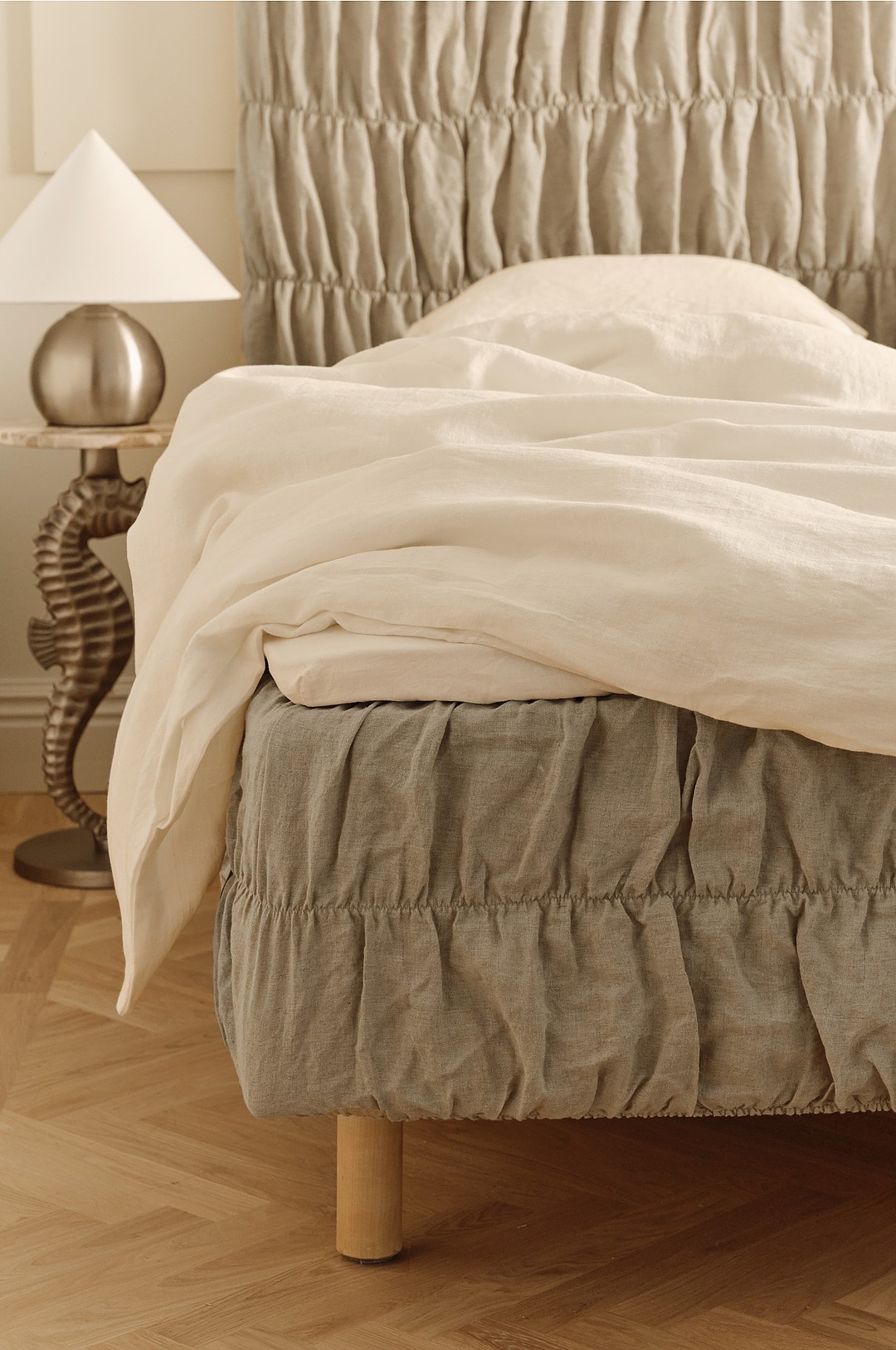 Ellos Home - Sengetrekk Candice Elastic 40 cm i lin - Beige