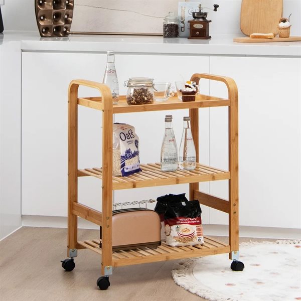 Bambusvogn – kjøkkenvogn / serveringsvogn / oppbevaringshylle i natur