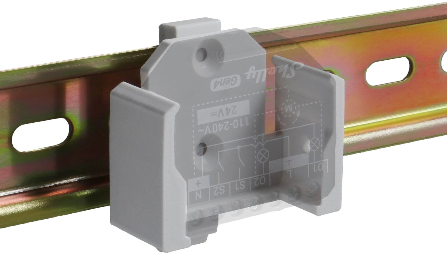 Light Solutions Shelly-DIN-Rail Adapter for Gen2 Devices (Shelly Plus I4 I4 DC Plus 1 Plus 1pm Plus 2pm 0-10 V Dimmer)